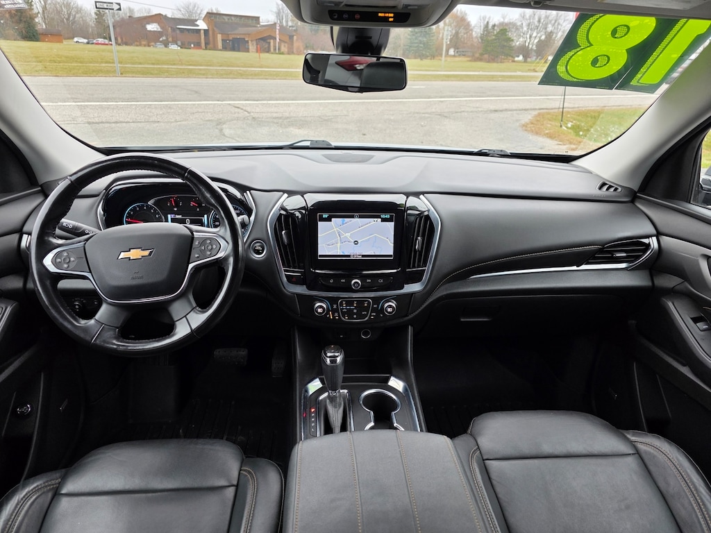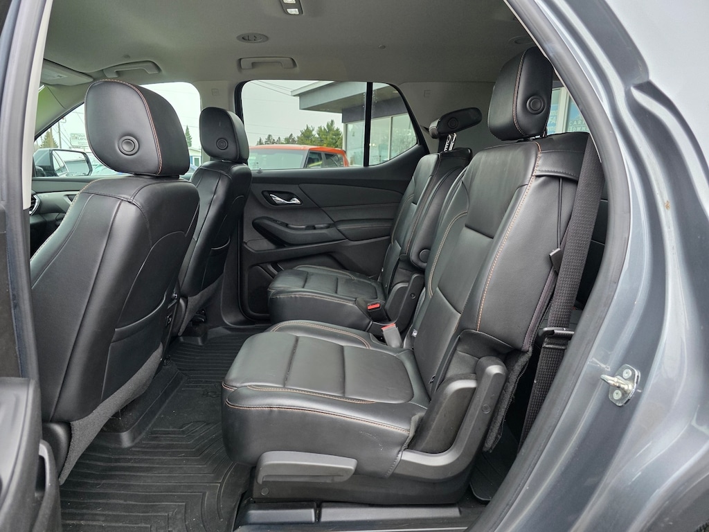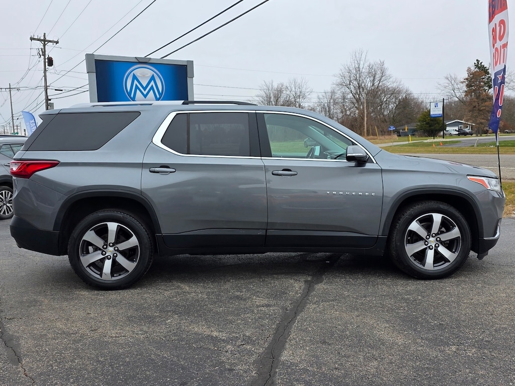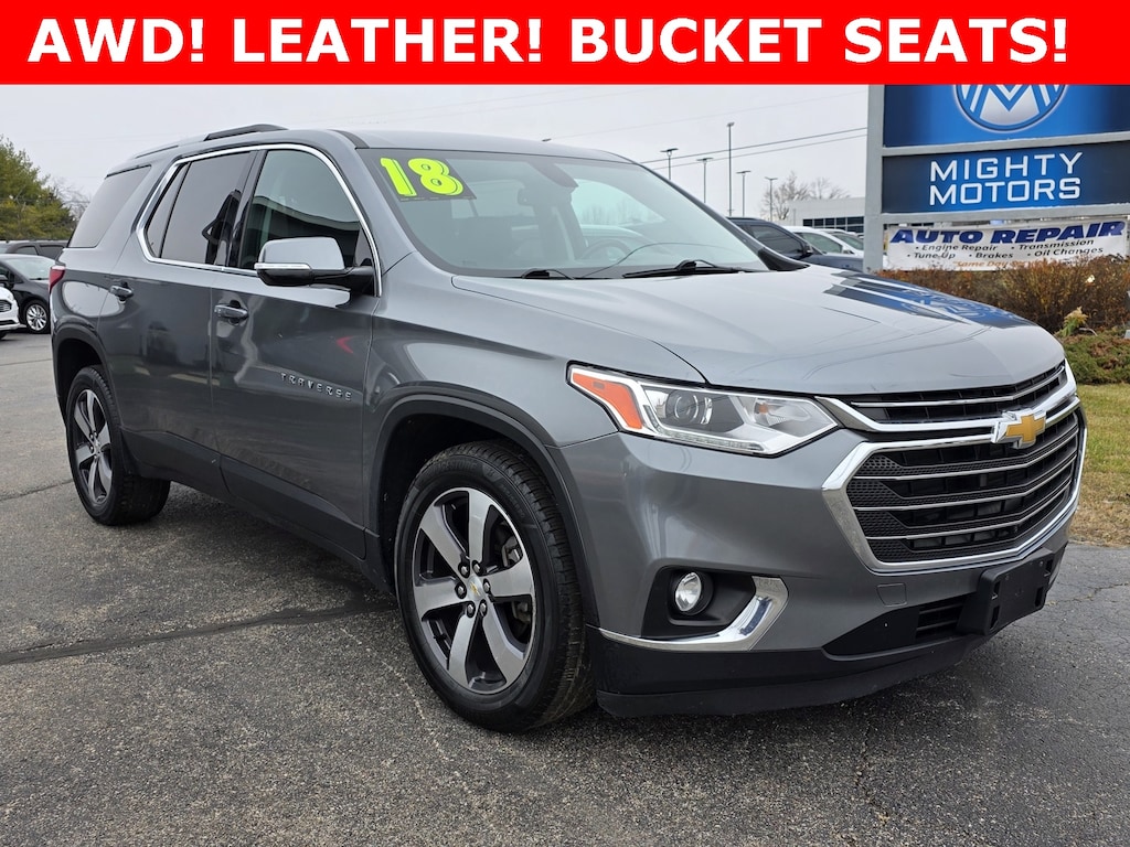 2018 Chevrolet Traverse 3LT AWD 3LT 4D Sport Utility 3.6L V6 SIDI VVT Satin Steel Metallic 9-Speed Automatic Perforated Leather Seating, Heated Seats, Remote Start, 3 Months Free Sirius Radio, All Wheel Drive, Rear Bucket Seats, Back Up Camera, Bluetooth, Apple CarPlay / Android Auto, Bose Premium Sound, 7-Passenger Seating (2-2-3 Seating Configuration), Apple CarPlay/Android Auto, Bose Premium 10-Speaker Audio System Feature, Emergency communication system: OnStar Guidance, Front License Plate Bracket Mounting Package, Heated door mirrors, Heated front seats, Heavy-Duty Cooling System, Leather-Appointed Seat Trim, Navigation System, Power driver seat, Preferred Equipment Group 3LT, Radio: Chevrolet MyLink AM/FM Stereo w/Navigation, Roof rack: rails only, SiriusXM Satellite Radio, Speed control, Steering wheel mounted audio controls, Trailering Equipment, Wheels: 20" Machined Face Aluminum.