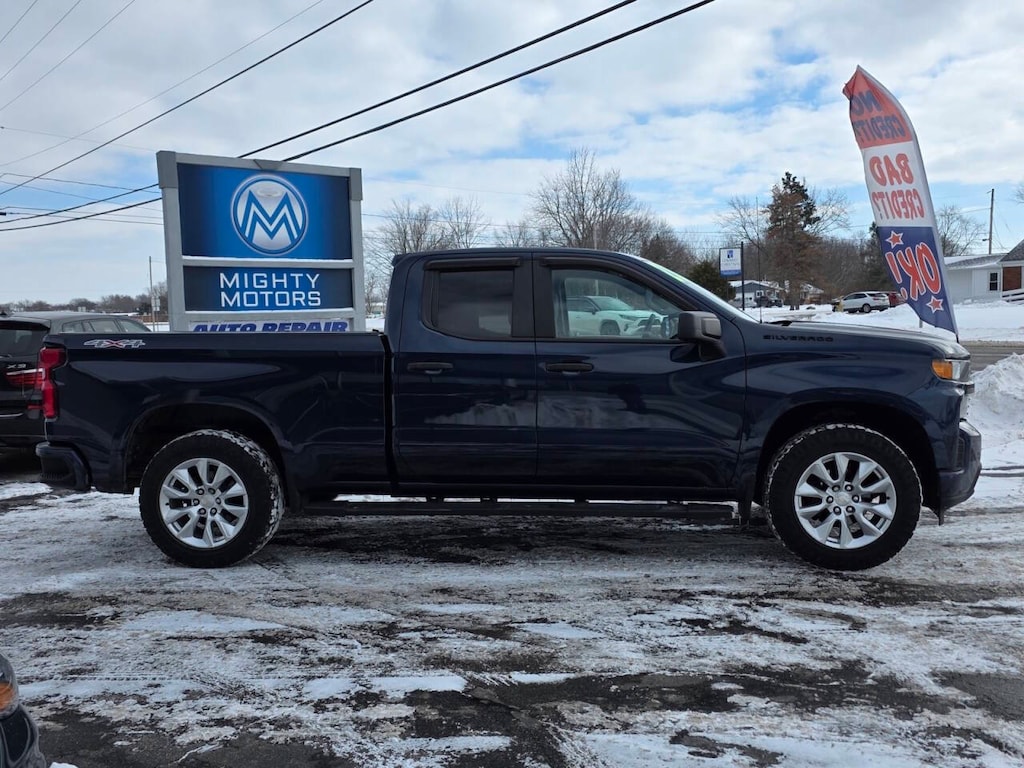 2020 Chevrolet Silverado 1500 Custom 4WD Custom 4D Double Cab EcoTec3 5.3L V8 Blue Metallic 6-Speed Automatic Electronic with Overdrive 4X4, Tow Package, Bluetooth, Back Up Camera, 170 Amps Alternator, 3.5" Diagonal Monochromatic Display, 4G LTE Wi-Fi Hot Spot Capable, Black Name Plates (LPO), Black Tailgate CHEVROLET Lettering (LPO), Bluetooth® For Phone, Body Color Grille, Chevrolet Connected Access Capable, Color-Keyed Carpeting Floor Covering, Compass, Custom Convenience Package, Custom Value Package, Dark Essentials Package (LPO), Deep-Tinted Glass, Electric Rear-Window Defogger, Exterior Parking Camera Rear, EZ Lift Power Lock & Release Tailgate, Front Black Bowtie Emblem (LPO), Front Frame-Mounted Black Recovery Hooks, Front Rubberized Vinyl Floor Mats, Hitch Guidance, Infotainment Package, LED Cargo Area Lighting, Locking Tailgate, Manual Tilt-Wheel Steering Column, OnStar & Chevrolet Connected Services Capable, Power Door Locks, Power Front Windows w/Driver Express Up/Down, Power Front Windows w/Passenger Express Down, Power Rear Windows w/Express Down, Preferred Equipment Group 1CX, Rear 60/40 Folding Bench Seat (Folds Up), Rear Rubberized-Vinyl Floor Mats, Remote Keyless Entry, Remote Vehicle Starter System, SiriusXM Radio, Steering Wheel Mounted Electronic Cruise Control, Theft Deterrent System (Unauthorized Entry), Trailering Package, Wheels: 20" x 9" Bright Silver Painted Aluminum.