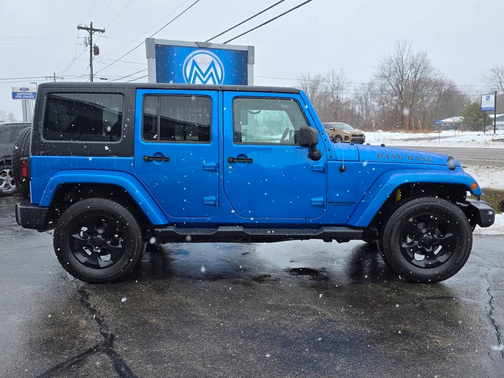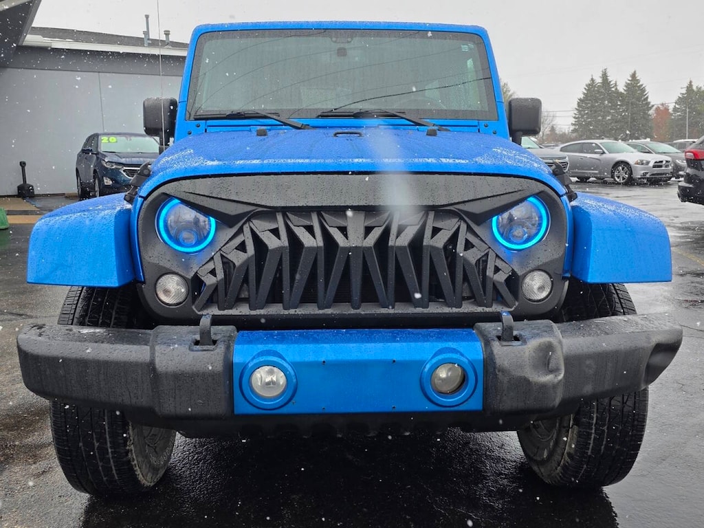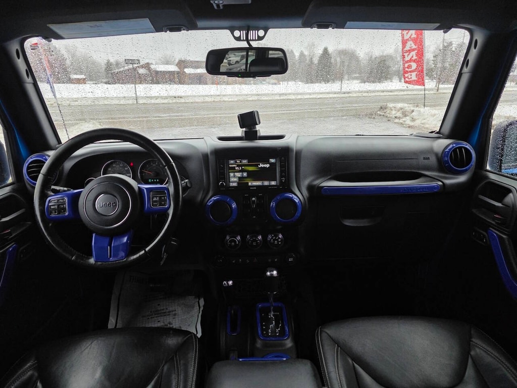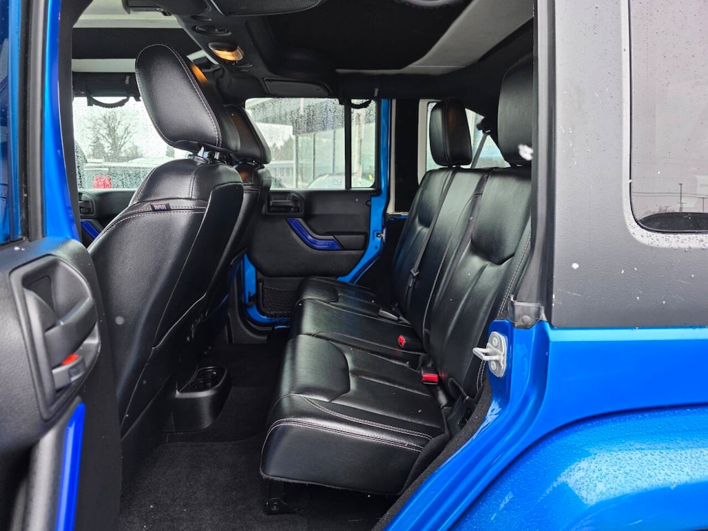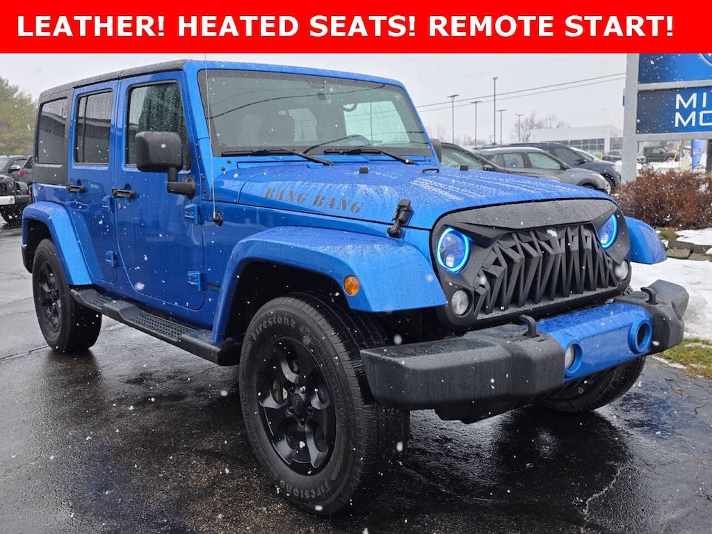 2016 Jeep Wrangler Unlimited Sahara 4WD Unlimited Sahara 4D Sport Utility 3.6L V6 24V VVT Hydro Blue Pearl Coat 5-Speed Automatic Heated Seats, Remote Start, Leather Seats, 4X4, Hard Top, 18" x 7.5" Polished Satin Carbon Wheels, 6.5" Touchscreen Display, 8 Speakers, AM/FM radio: SiriusXM, Audio Jack Input for Mobile Devices, Black 3-Piece Hard Top, Body Color Appliques Front Bumper, Body Color Appliques Rear Bumper, Body Color/Accent Color Grille, Class II Receiver Hitch, Connectivity Group, Driver Height Adjuster Seat, Dual Top Group, Freedom Panel Storage Bag, Front Seat Back Map Pockets, GPS Navigation, Heated Front Seats, Leather Trimmed Bucket Seats, Leather Wrapped Steering Wheel, Quick Order Package 24G, Rear Window Defroster, Rear Window Wiper/Washer, Remote USB Port, Speed control, Steering wheel mounted audio controls, Sunrider Soft Top, Tire Pressure Monitoring Display, Trailer Tow Group, Trailer Tow w/4-Pin Connector Wiring, Uconnect Voice Command w/Bluetooth, Vehicle Information Center.
