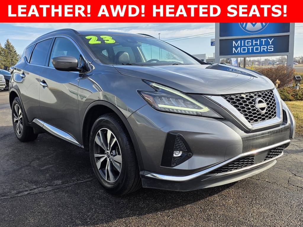 2023 Nissan Murano SV AWD SV 4D Sport Utility 3.5L V6 DOHC 24V Gun Metallic CVT with Xtronic Heated Seats, Back Up Camera, Leather, AWD, Apple CarPlay / Android Auto, AM/FM/CD/MP3/WMA Audio System, Automatic temperature control, Front dual zone A/C, Front fog lights, Heated front seats, Leatherette-Appointed Seat Trim, NissanConnect featuring Apple CarPlay and Android Auto, Power passenger seat, Steering wheel mounted audio controls, Wheels: 18" Machined Aluminum-Alloy.
